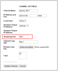 For every target file you need to configure a channel on the WebUI! Important is only the “Streaming Port” which is the incoming port of the stream.