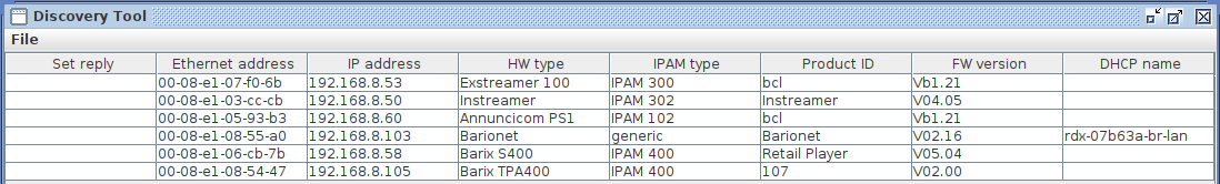 Find out the IP address of your Barionet400 device either using the Barix Discovery Tool or a network discovery program. By default the Barionet is configured to be a DHCP client, if a DHCP server is in the network it will get an IP address offered from it.