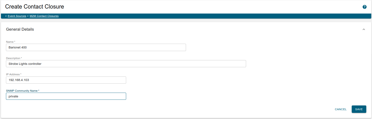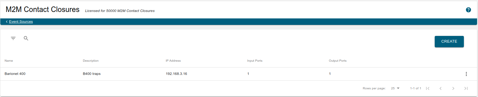 Configure an M2M contact closure device under Event Sources -> M2M Contact Closures