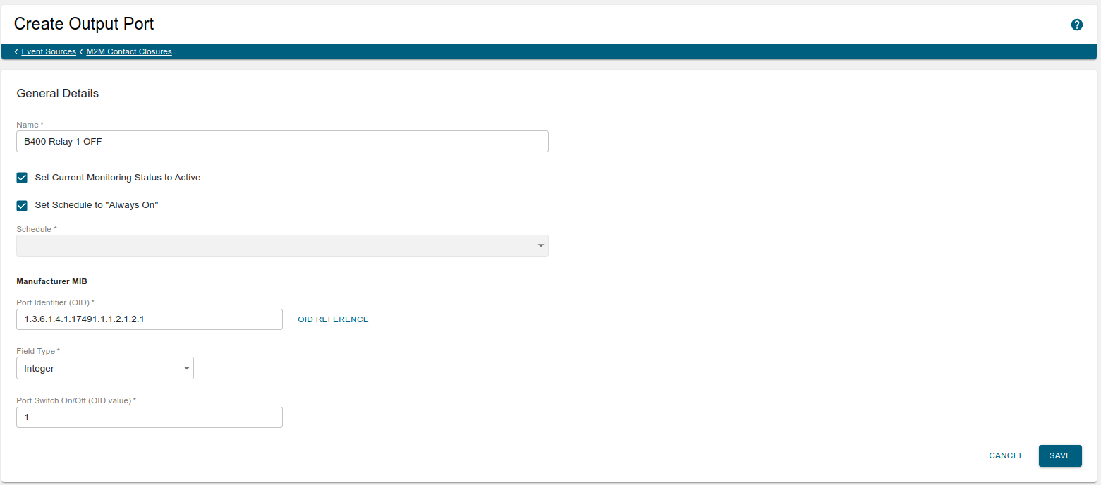 Click SAVE. Add another Output Port to specify another Relay state or to configure another relay of the Barionet