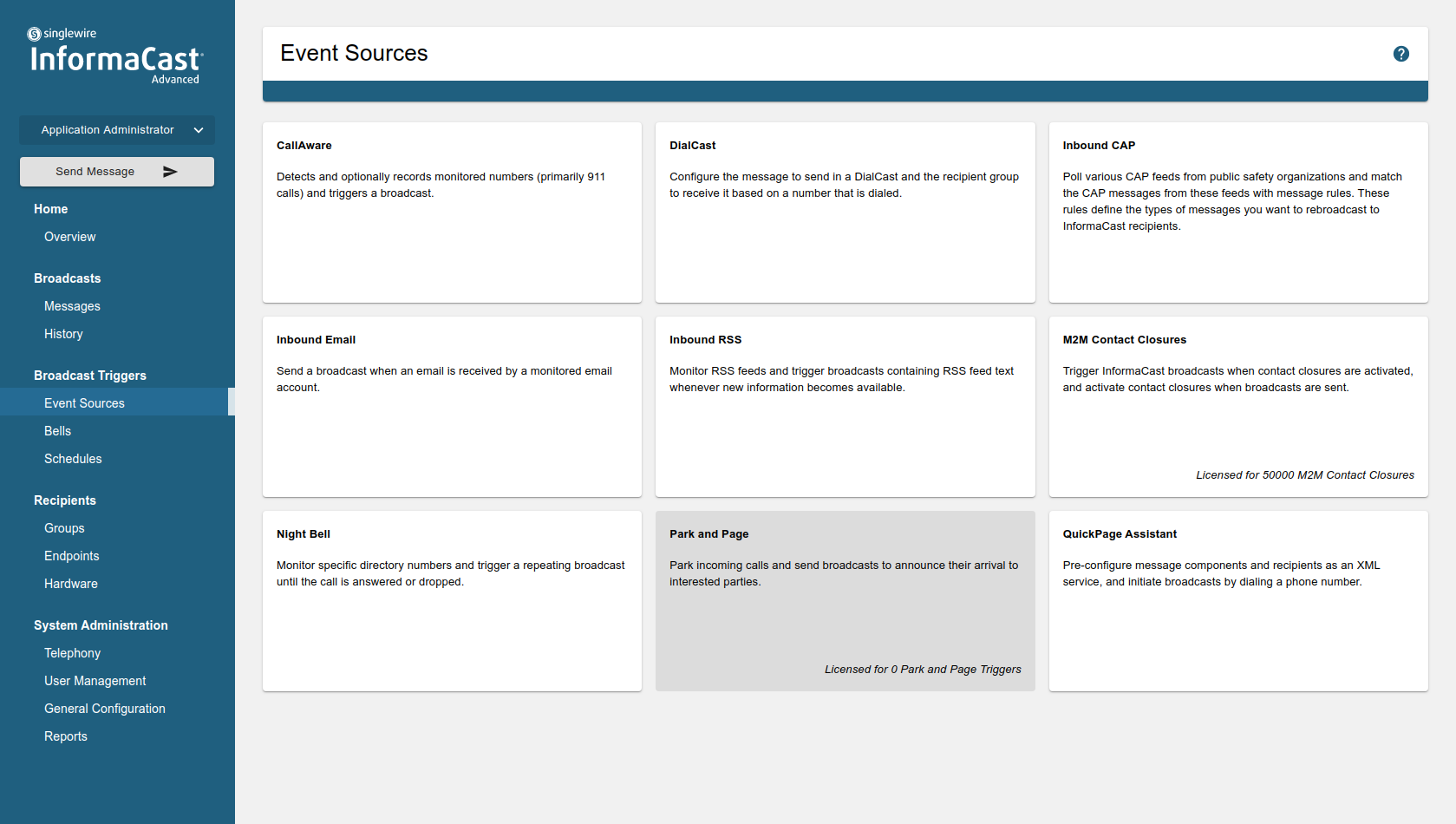 - Once logged in the main dashboard is visualized. In order to setup M2M contact closure devices locate Event Sources in the left side navigation menu