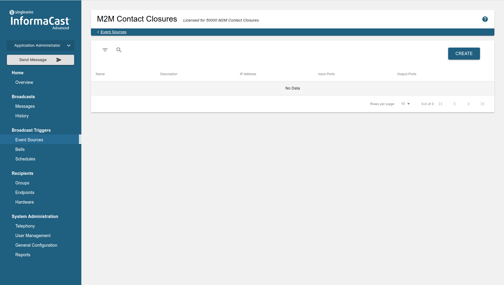 - In the M2M contact closures section are listed the devices already created. Click on CREATE to create your first device