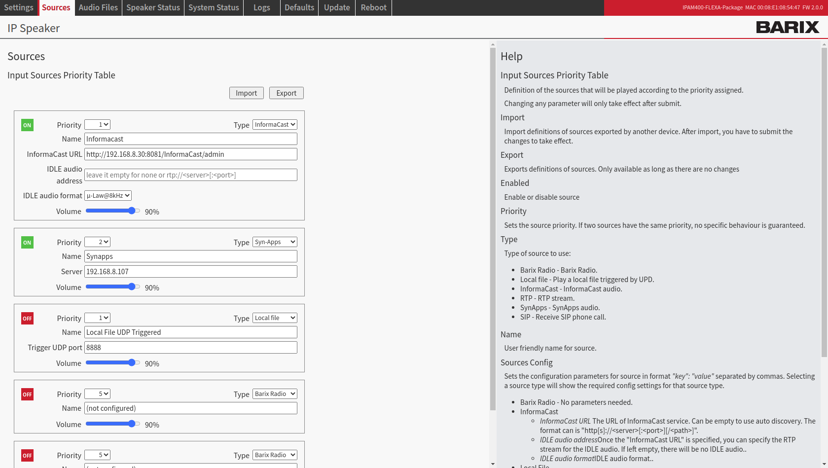 - Barix TPA400 IP Former running IP Speaker firmware (the endpoint running as Informacast Client) - TPA400 is PoE powered device.