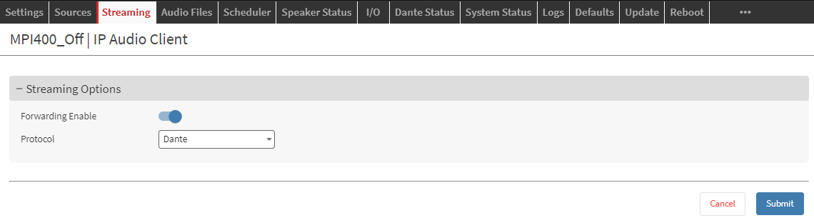 IPAC offers a quite unique feature called: Dante® Forwading, which can be accessed in the ‘Streaming’ tab: