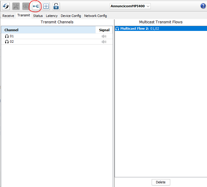 Just be aware that to server more than 2 receivers (4 channels) you will need to enable the Multicast stream transmission on the Dante® Controller (the button circled in red in the below picture):