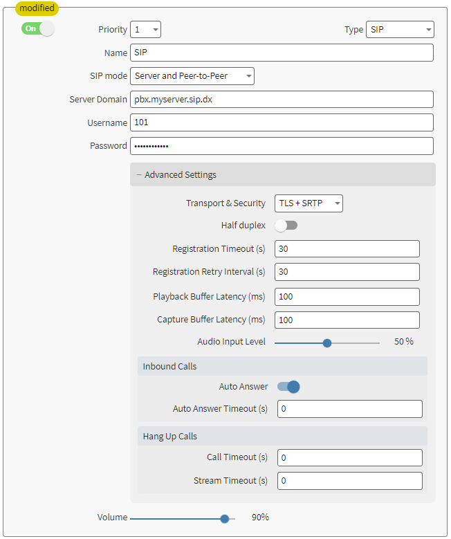 2. Setup the SIP source to register with the SIP server in the 'Sources' tab