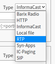 | 4 | Select Barix Radio In any of the 5 layers from the Type drop-down menu, by default is already selected on the 3 bottom layers (all with priority 5), in this case simply switch the layer ON - It is a source pre-configured to play music from https://www.barix.com/radio.m3u ![]() |