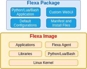Flexa Package: This is the package that includes the Flexa application that will run on top of the Flexa Image. In addition to the application, the package needs to have manifest and install files (explained later in this document) and, optionally, some default configurations that can be used by the application and a custom WebUI.