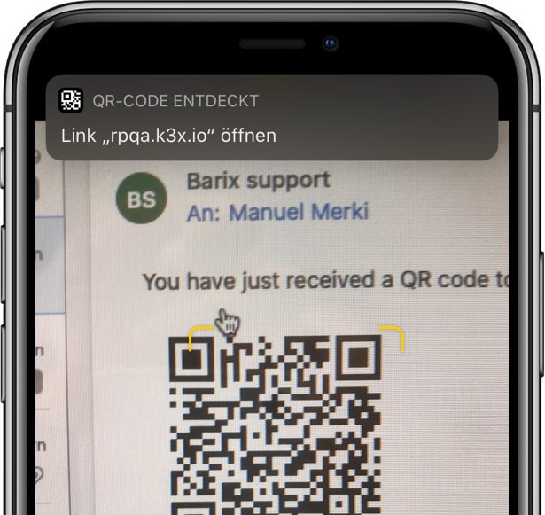 3. After a second your iPhone shows a Notification. (If not, click on the QR code on the screen to focus the camera).
