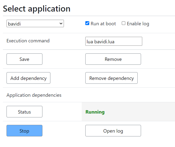 Execution command: lua bavidi.lua (change it according to the name you assigned to the app)