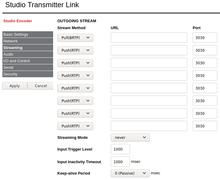 With BRTP is the player (Annuncicom 1000) that requests the stream and so "holes" the NAT.