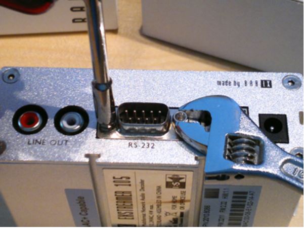 Use pliers or a tweezer to place the springs in the slot between the RS-232 connector and the enclosure.