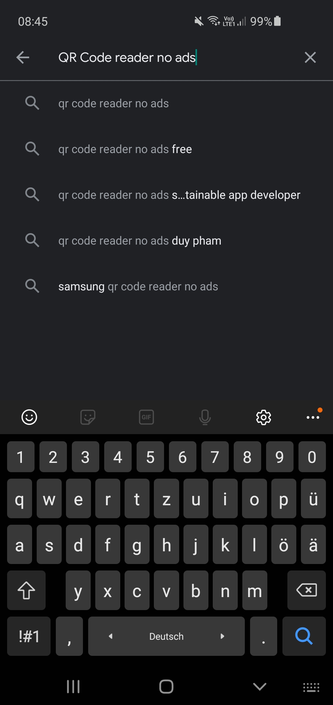 2. Tap on the Search bar and write "QR Code reader no ads" - click search.