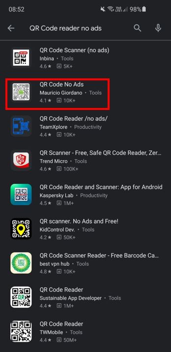3. A lot of applications will pop up. You can download any app that scans the QR Code.