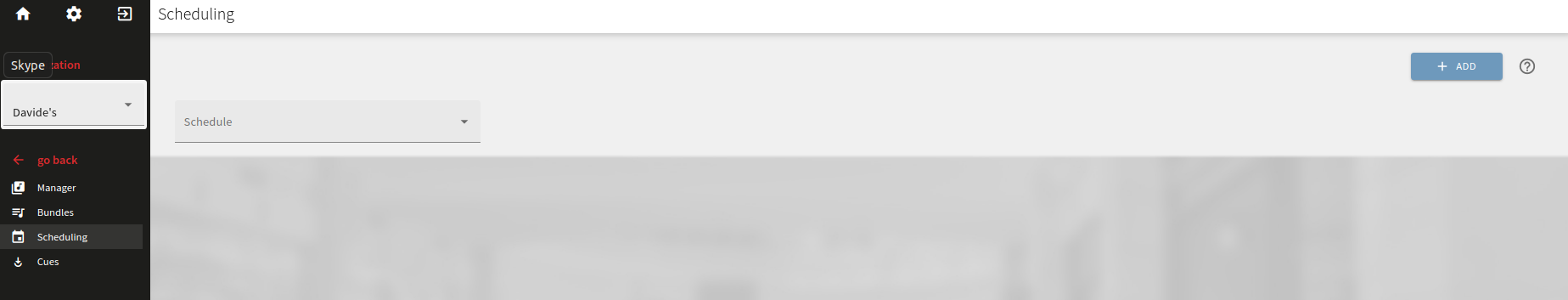 - Locate the Scheduling page, if a Schedule is not yet created click on ADD and assign a name to the scheduler.