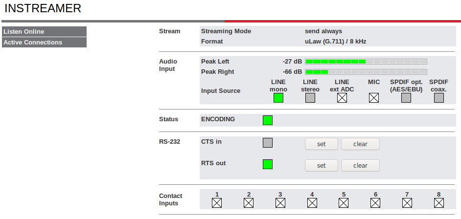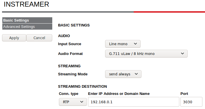 Note, for the Instreamer is also a special firmware available which is optimized for G.711 8 kHz streaming, this is available only on request !