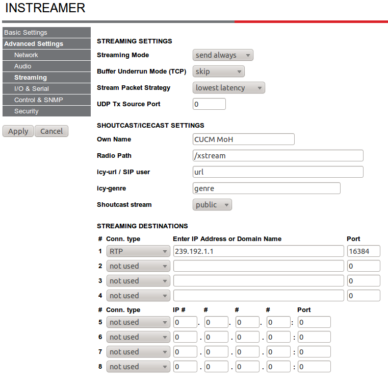 Use the Barix Instreamer as an MoH Source on Cisco CUCM