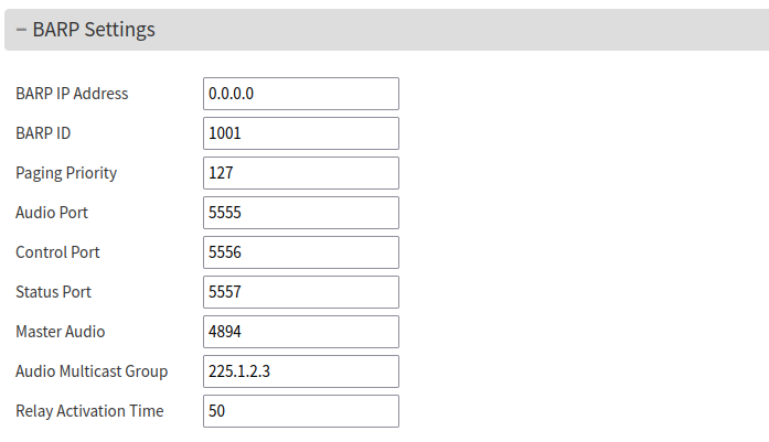 If set to 0.0.0.0 or an invalid multicast address, then BARP messages are broadcasted.