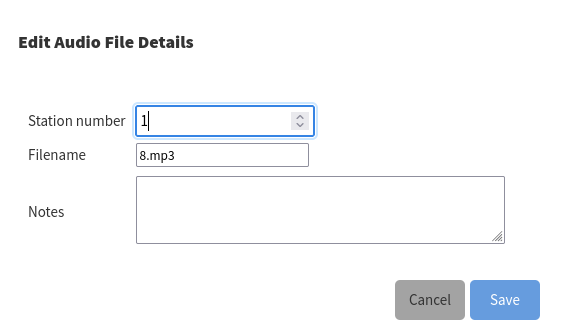 Supported audio formats: mp3, wav, ogg and zip.
