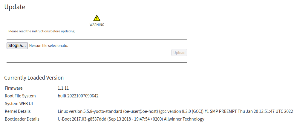 In the same page it’s possible to visualize the current firmware version running.