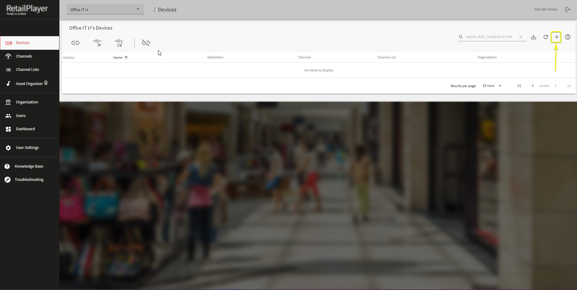 In the Device List, click on the '+' in the upper right corner to add a new RetailPlayer device