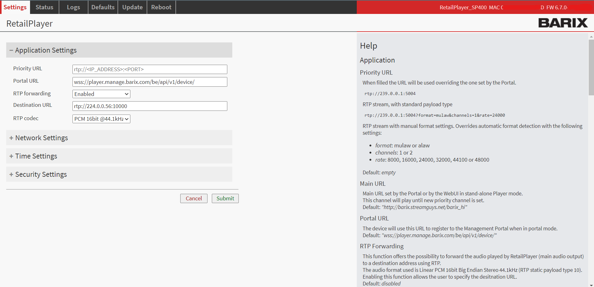 RetailPlayer allows firmware updates either locally via its web interface or remotely through the Portal (see the Update Page section for details).