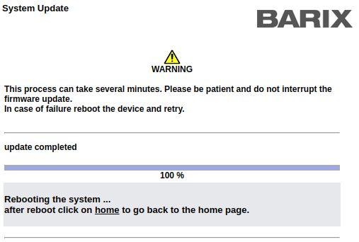 Barix strongly recommends using the latest firmware version to benefit from important new features, security fixes, and updated libraries and components.