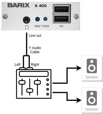 Below is an example of how to connect a RetailPlayer S400 to an amplification system: