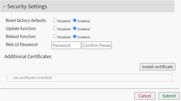 To initialize this secure connection, each player must have a local client certificate issued by Barix. This certificate is installed during firmware updates and ensures the device’s connection is protected against third-party attacks, preventing unauthorized access. Loading different certificates is not possible, and any connection without a valid Barix-issued certificate will be rejected. Only Barix can issue these certificates, guaranteeing the security of the system.