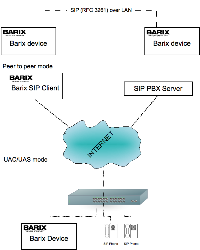 Peer to peer session, device can connect directly to the final UAS trough INVITE, and act as UAS on incoming calls