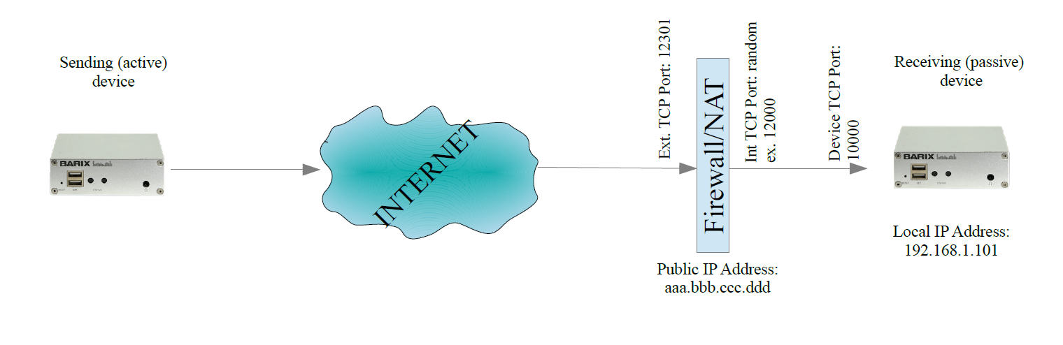 However, here you are some configuration basics. Let’s assume that you have configured your router to forward incoming TCP connections to port 12301 to the device with IP address 192.168.1.101 and port 10000 on the LAN as shown on the picture below: