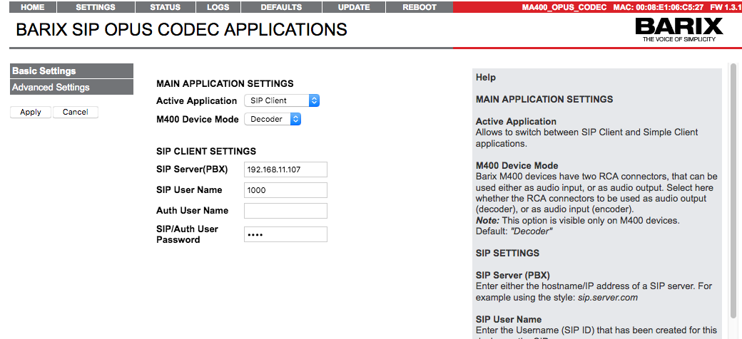SIP OPUS CODEC Application FW is the Linux ARM platform successor of Barix ABCL SIP Client FW. It has been developed using the PJSUA2 library from the PJSIP project.
