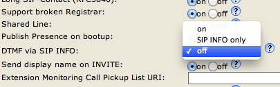 Open the web configuration page, and go to your Identity-->SIP page. Find the option „DTMF via SIP info“, and set it to „Off“: