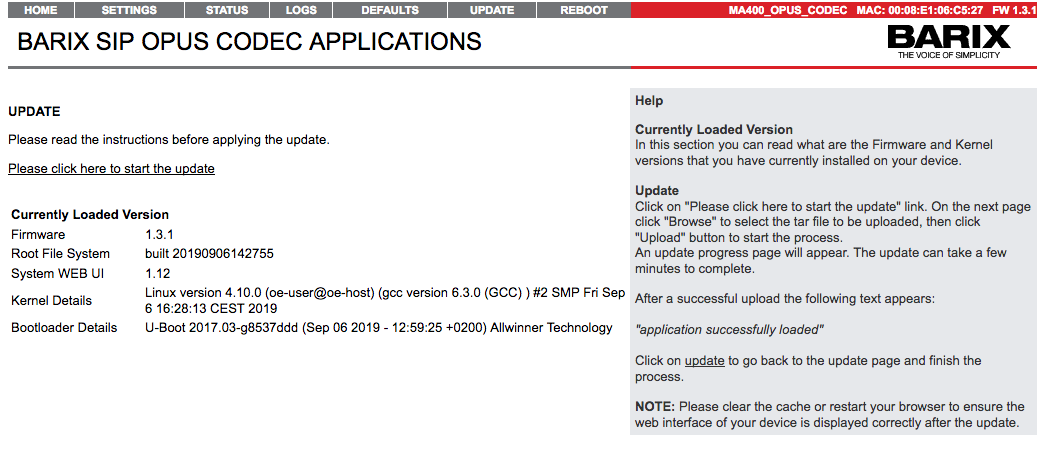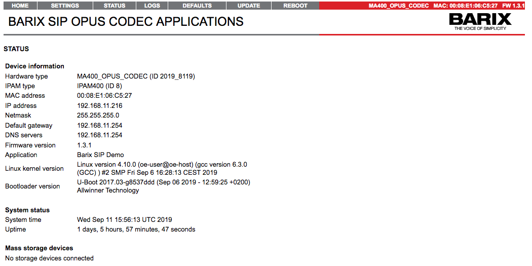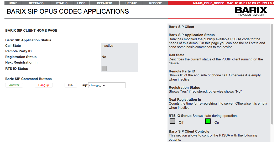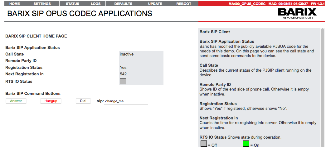 SIP OPUS CODEC Application FW is the Linux ARM platform successor of Barix ABCL SIP Client FW. It has been developed using the PJSUA2 library from the PJSIP project.
